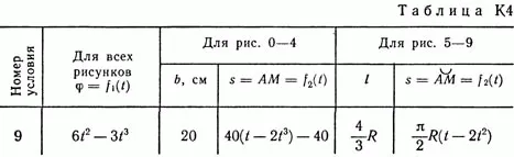 Решение контрольной К4 Вариант 79. Задание для задачи К4: Прямоугольная пластина (рис. К4.0 — К4.4) или круглая пластина радиуса R = 60 см (рис. К4.5 — К4.9) вращается вокруг неподвижной оси по закону фи = f1(t), заданному в табл. К4. Положительное направление отсчета угла фи показано на рисунках дуговой стрелкой. На рис. 0, 1, 2, 5, 6 ось вращения перпендикулярна плоскости пластины и проходит через точку О (пластина вращается в своей плоскости); на рис. 3, 4, 7, 8, 9 ось вращения OO1 лежит в плоскости пластины (пластина вращается в пространстве). По пластине вдоль прямой BD (рис. 0—4) или по окружности радиуса R (рис. 5—9) движется точка М; закон относительного движения, т.е. зависимость s = AM = f2(t) (s выражена в сантиметрах, t — в секундах), задан в таблице отдельно для рис. 0—4 и для рис. 5—9; там же даны размеры b и l. На всех рисунках точка М показана в положении, при котором s = АМ>0 (при s<0 точка М находится по другую сторону от точки А). Необходимо найти абсолютную скорость и абсолютное ускорение точки М в момент времени t1 = 1 с.