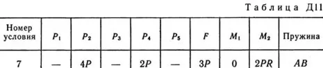 Решение задачи по теормеху из решебника С.М. Тарга 1989 г. Д11 Вариант 17. Условие к задаче Динамика 11 (Полное условие на странице 95): Механическая система состоит из тел 1, 2, …, 5 весом P1, Р2, …, P5 соответственно, связанных друг с другом нитями, намотанными на ступенчатые блоки 1 и 2 (рис. Д11.0 — Д11.9, табл. Д11). Радиусы ступенчатых блоков 1 и 2 равны соответственно R1 = R, r1 = 0,4R, R2 = R, r2 = 0,8R. При вычислении моментов инерции все блоки, катки и колеса считать однородными сплошными цилиндрами радиуса R. На систему кроме сил тяжести действует сила F, приложенная к телу 3 или 4 (если тело 3 в систему не входит, сила приложена в точке В к тележке), и пары сил с моментами М1, M2, приложенные к блокам 1 и 2; когда М<0, направление момента противоположно показанному на рисунке. На участке нити, указанном в таблице в столбце «Пружина», включена пружина с коэффициентом жесткости с (например, если в столбце стоит АВ, то участок АВ является пружиной, если AD, то AD — пружина и т.д.); в начальный момент времени пружина не деформирована. Составить для системы уравнения Лагранжа и найти закон изменения обобщенной координаты x, т. е. x = f(t), считая, что движение начинается из состояния покоя; определить также частоту и период колебаний, совершаемых телами системы при ее движении (о выборе координаты x см. «Указания»). Прочерк в столбцах таблицы, где заданы веса, означает, что соответствующее тело в систему не входит (на чертеже не изображать), а ноль — что тело считается невесомым, но в систему входит; для колес, обозначенных номером 4, Р4 — их общий вес (вес платформы такой тележки не учитывается).