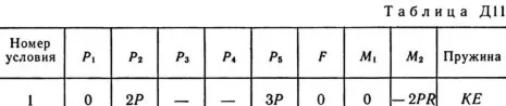 Решение задачи по теормеху из решебника С.М. Тарга 1989 г. Д11 Вариант 81. Условие к задаче Динамика 11 (Полное условие на странице 95): Механическая система состоит из тел 1, 2, …, 5 весом P1, Р2, …, P5 соответственно, связанных друг с другом нитями, намотанными на ступенчатые блоки 1 и 2 (рис. Д11.0 — Д11.9, табл. Д11). Радиусы ступенчатых блоков 1 и 2 равны соответственно R1 = R, r1 = 0,4R, R2 = R, r2 = 0,8R. При вычислении моментов инерции все блоки, катки и колеса считать однородными сплошными цилиндрами радиуса R. На систему кроме сил тяжести действует сила F, приложенная к телу 3 или 4 (если тело 3 в систему не входит, сила приложена в точке В к тележке), и пары сил с моментами М1, M2, приложенные к блокам 1 и 2; когда М<0, направление момента противоположно показанному на рисунке. На участке нити, указанном в таблице в столбце «Пружина», включена пружина с коэффициентом жесткости с (например, если в столбце стоит АВ, то участок АВ является пружиной, если AD, то AD — пружина и т.д.); в начальный момент времени пружина не деформирована. Составить для системы уравнения Лагранжа и найти закон изменения обобщенной координаты x, т. е. x = f(t), считая, что движение начинается из состояния покоя; определить также частоту и период колебаний, совершаемых телами системы при ее движении (о выборе координаты x см. «Указания»). Прочерк в столбцах таблицы, где заданы веса, означает, что соответствующее тело в систему не входит (на чертеже не изображать), а ноль — что тело считается невесомым, но в систему входит; для колес, обозначенных номером 4, Р4 — их общий вес (вес платформы такой тележки не учитывается).